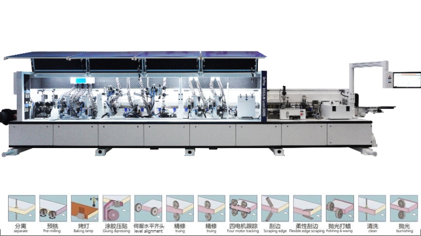 ●Dispositivo de pulido y encerado: Pule y encera el material de cantos para mejorar su suavidad y brillo, haciéndolo más estético, duradero, resistente a la humedad y al desgaste.