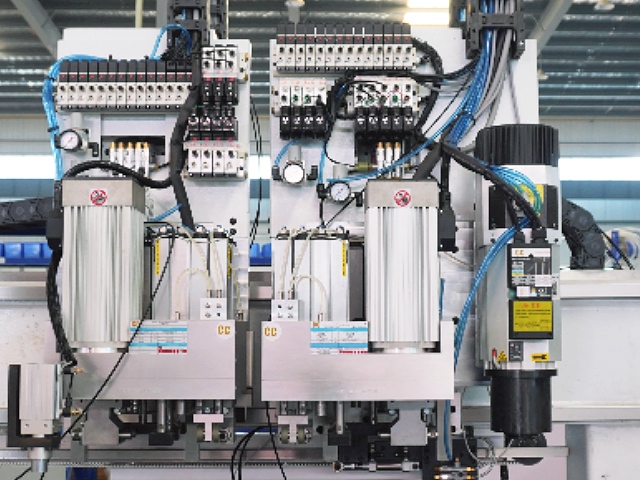 4. Equipada con una mesa de trabajo y una placa de presión con flotación neumática, se forma una capa de aire en las superficies superior e inferior del panel durante el procesamiento, lo que mejora la eficiencia de transporte y evita rayones. La perforación se realiza simultáneamente con la placa de presión, lo que garantiza precisión y eficiencia. La posición de instalación única de la bolsa de perforación neumática evita que el panel flote durante la perforación, previniendo el astillado de los bordes y las desviaciones en la posición de los orificios; además, previene eficazmente la acumulación de polvo en la bolsa, lo que puede causar atascos en la broca y afectar la producción.
