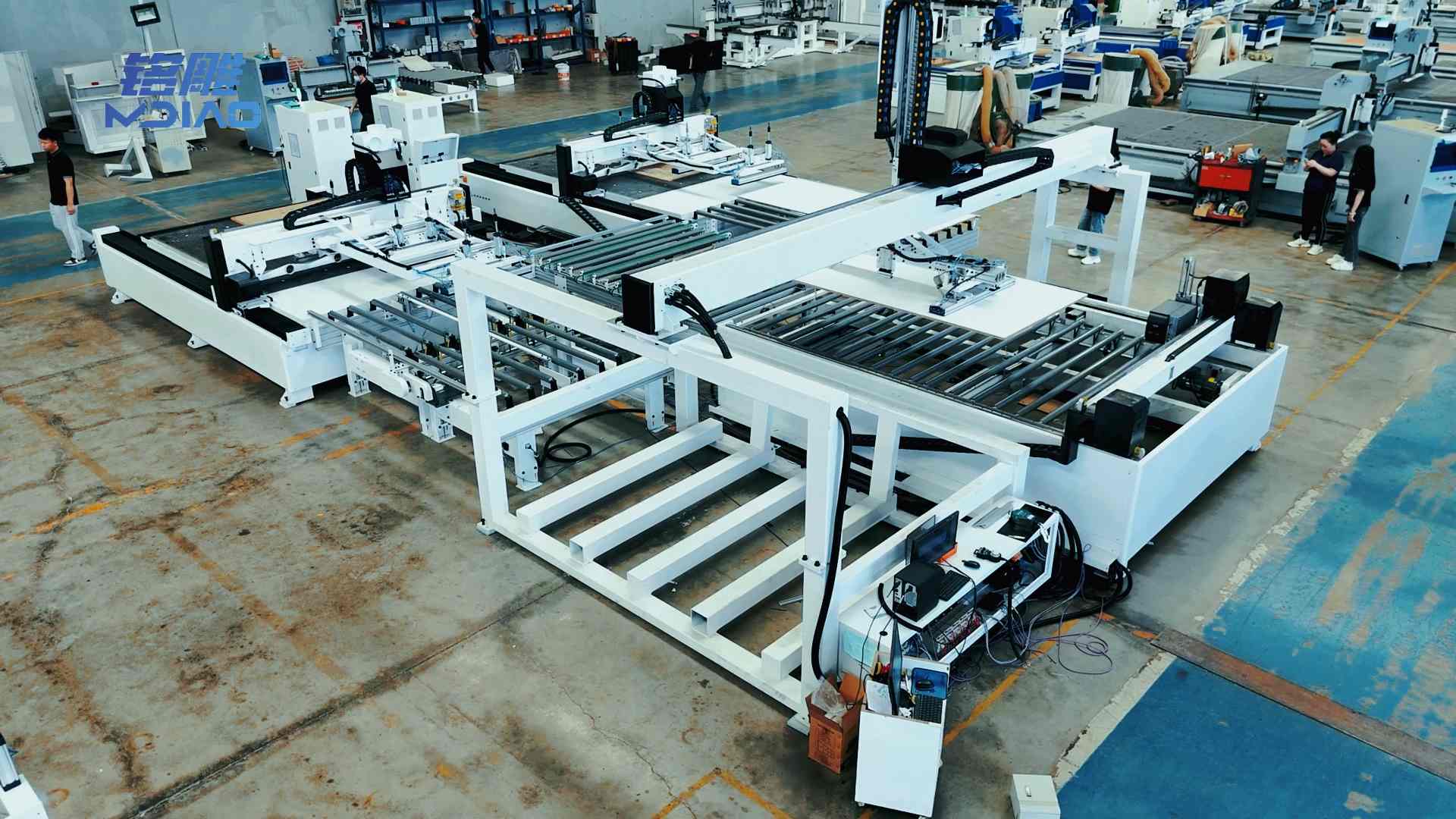 ●El Línea de producción de muebles a medida M12(1+2) con carga mediante grúa pórtico. Libera a los trabajadores de la necesidad de entrar y salir frecuentemente de las áreas de máquinas herramienta y de manipular chapa metálica pesada, evitando así posibles lesiones personales y riesgos de colisión con los equipos, lo que crea un entorno de trabajo más seguro.